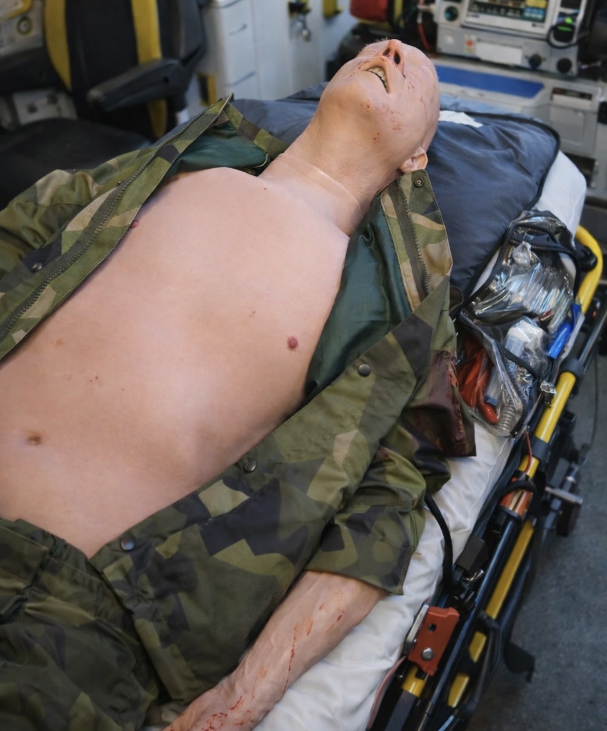 Mycket realistisk övningsdocka anpassad för fältmässigt militärt bruk!