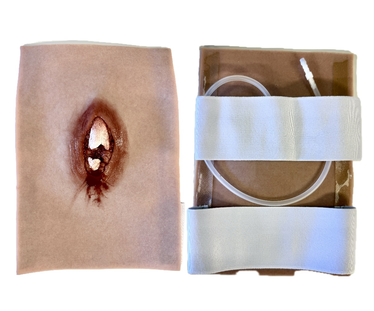 Mycket realistisk övningsmodul med knivstick för övningsmoment med tamponering/sårpackning.